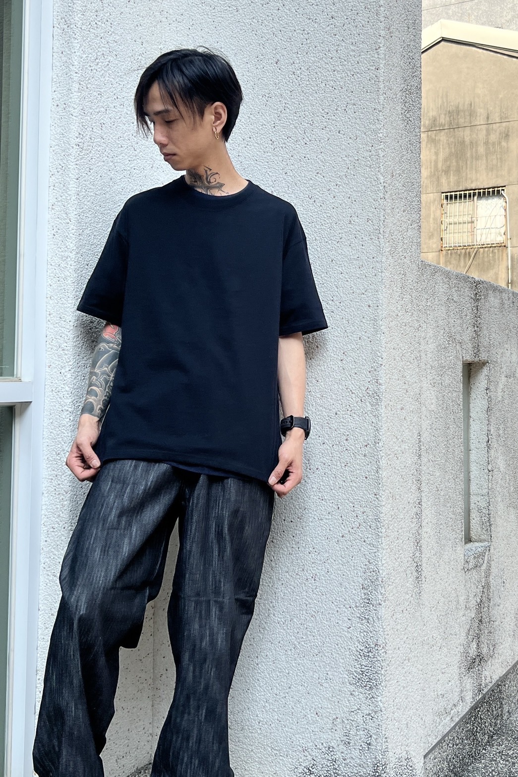配上寬褲、銀飾、靜音手錶
